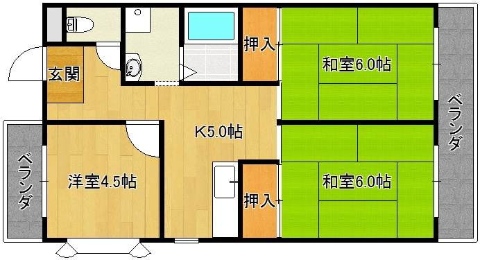 7万5,000円 南向き 各部屋6帖 トランクルーム付